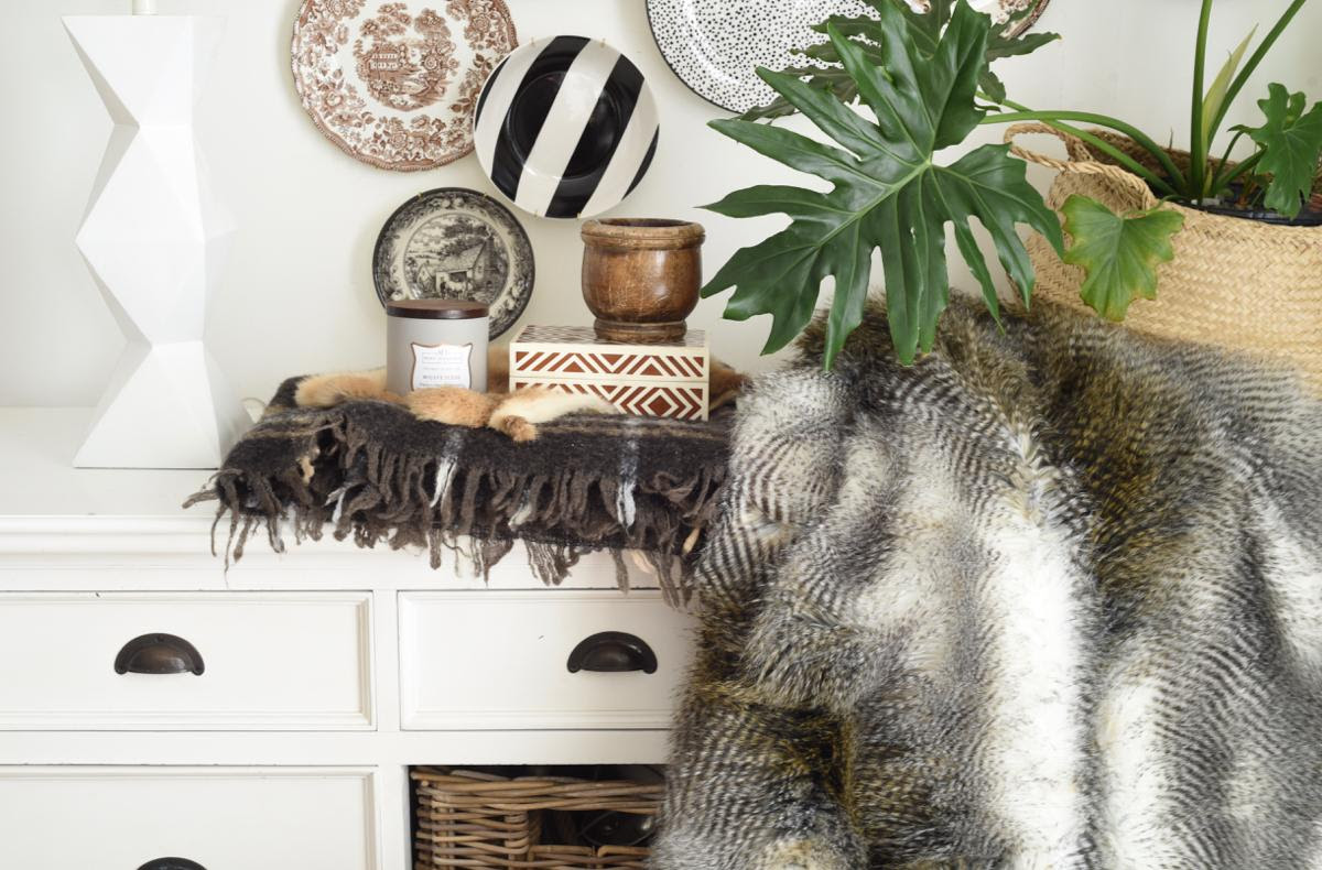 For me, this past week it was my brown plaid wool throw, a few fur pelts, a musky, wintery candle, a brown decorative box, a wooden container and a really heavy throw.